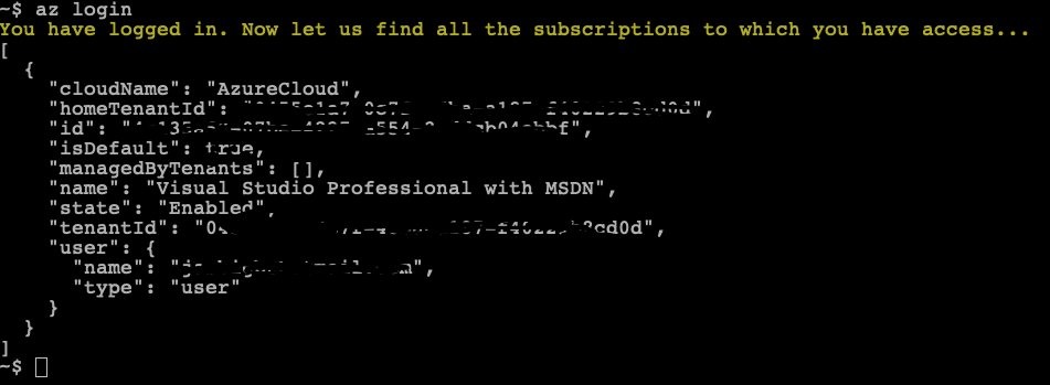 It will open browser to login and below info will shown about subscription.